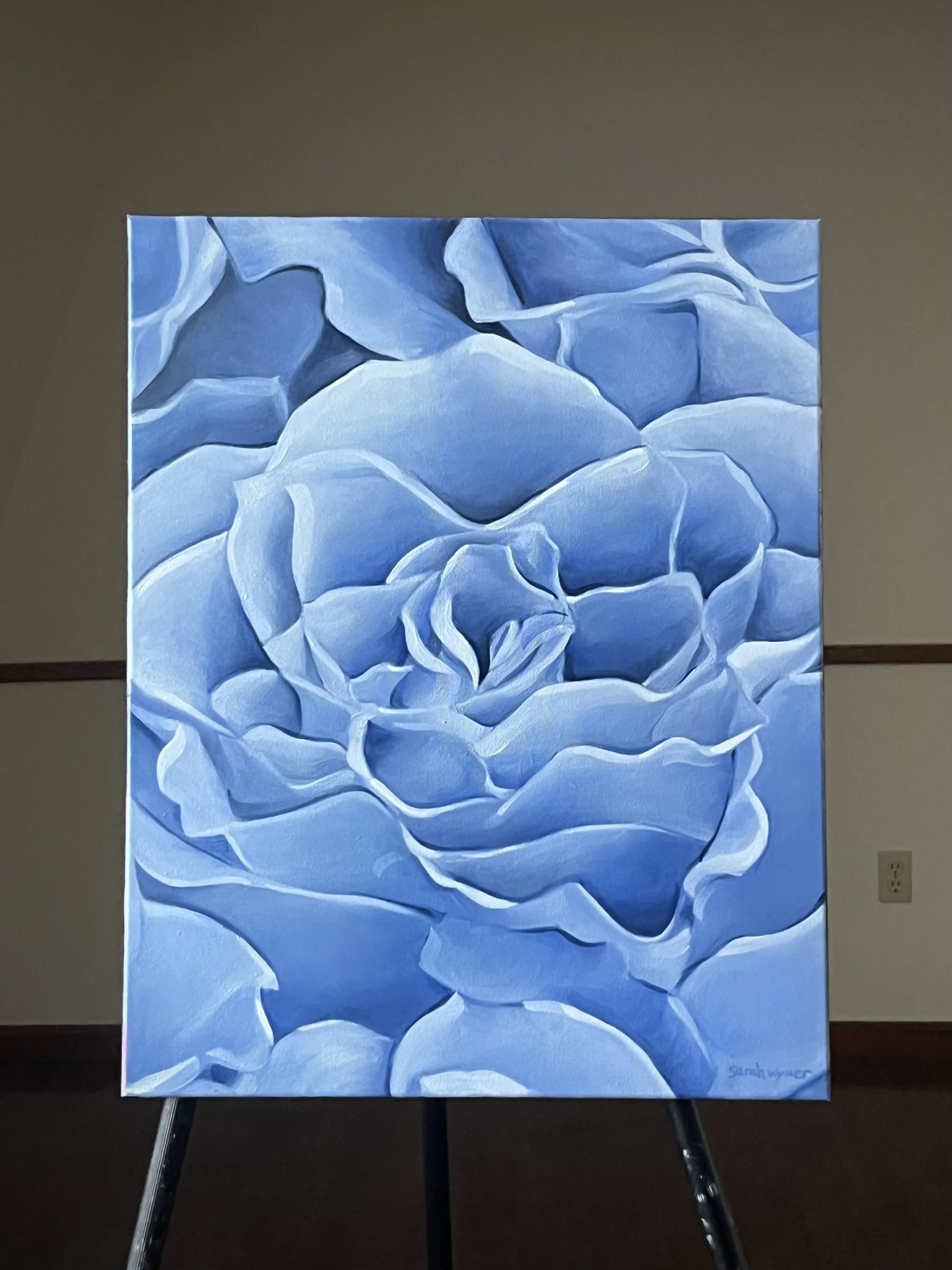 Here, an all-blue palette transforms the rose into something both meditative and abstract. Without the distraction of multiple colors, the eye is drawn to the sculptural qualities of the petals: their curves, folds, and shadows, revealing a presence that is delicate yet strong.